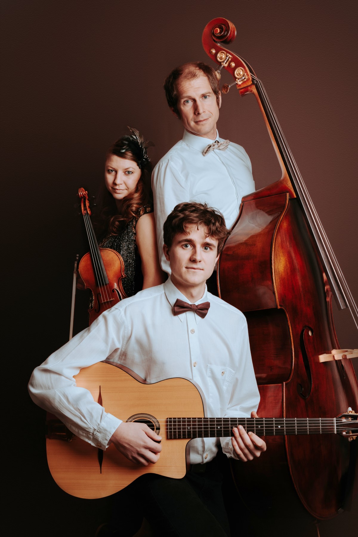 Federleicht und verspielt erleben Sie mit dem Trio Nuages aus Dresden Gypsy Swing, Chanson und Jazz à la Manouche. Musik, die kleine Geschichten des Lebens erzählt und zum Tanzen einlädt. Juliane Liebing (Gesang, Geige), Mathias Jehling (Kontrabass) und Joachim Bade (Gitarre) laden Sie ein in die Welt des Gypsy Jazz einzutauchen, auf Entdeckungsreise zu gehen und davon zu schweben.